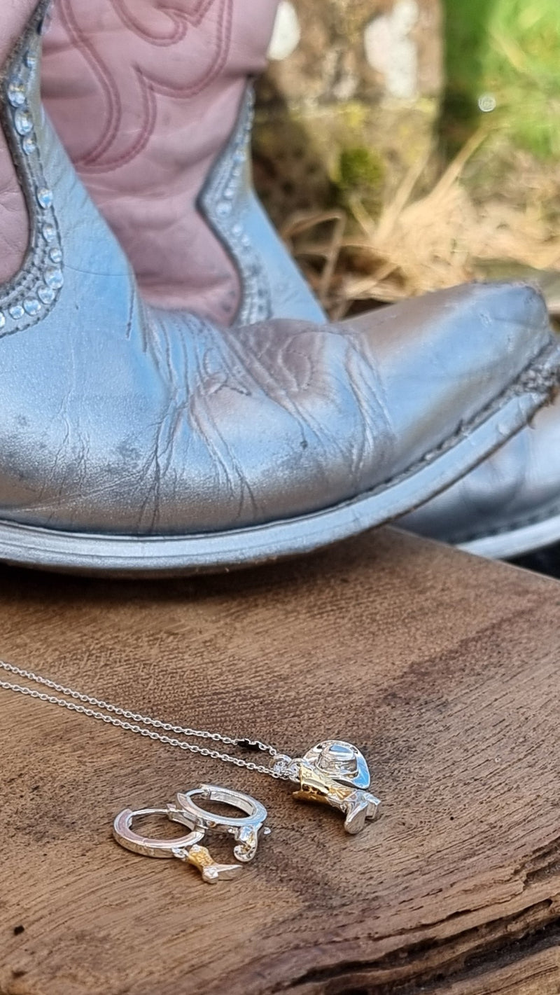 But we couldn't stop there—no sir! We also had to introduce our Cowboy Hat Necklace in Sterling Silver, complete with gold plate detail around the hat band. With its lovely shape and fun design, this necklace is perfect for anyone who loves all things Western or just wants to add a bit of line dancing flair to their look.