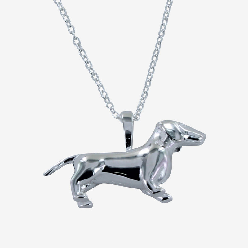 Sterling Silver 3D Dachshund Dog Necklace Description