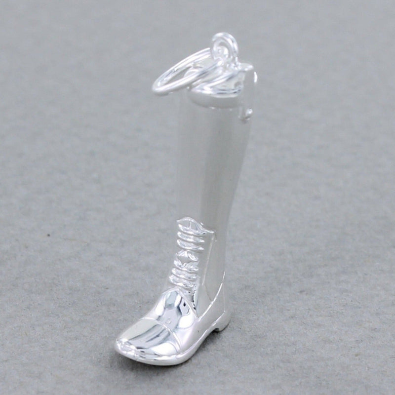 Our Sterling Silver Large Riding Boot Charm is beautifully designed with exquisite attention to detail. In sterling silver with a high shine finish, the riding boot looks fab when added to our sterling silver chain to create an exquisite pendant necklace. It can also be purchased on its own and will come with an additional split ring so that you can add it to a beautiful charm bracelet you already own.