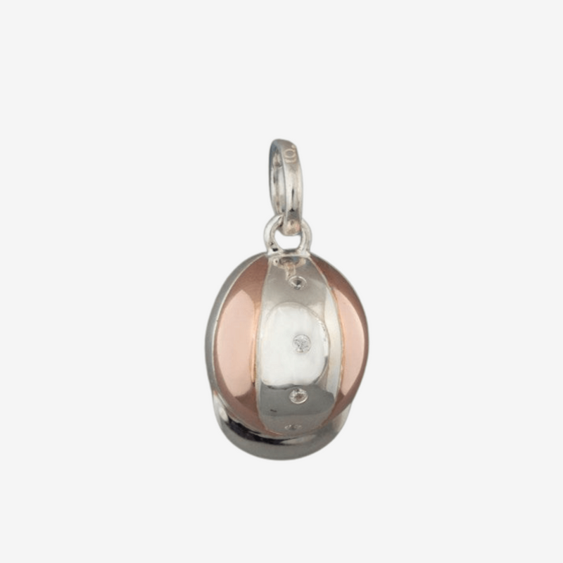 This exquisite Sterling Silver and Rose Gold Riding Hat Charm by Gemma J is crafted from the finest quality 925 sterling silver with rose gold vermeil (plated) detail. The two contrasting finishes compliment each other beautifully, with the top of the riding hat studded with four cubic zirconia stones to add some sparkle. With fabulous detail, this charm can be added to our silver charm necklace or bracelet to create a beautiful gift. The charm can also be purchased on its own and will come with a sterling silver split ring for you to attach to your favourite piece of jewellery. We have a fabulous selection of charms which can be paired with this riding hat to create a really unique and special gift.