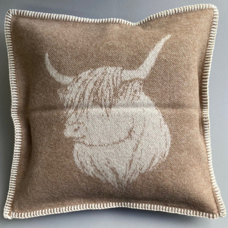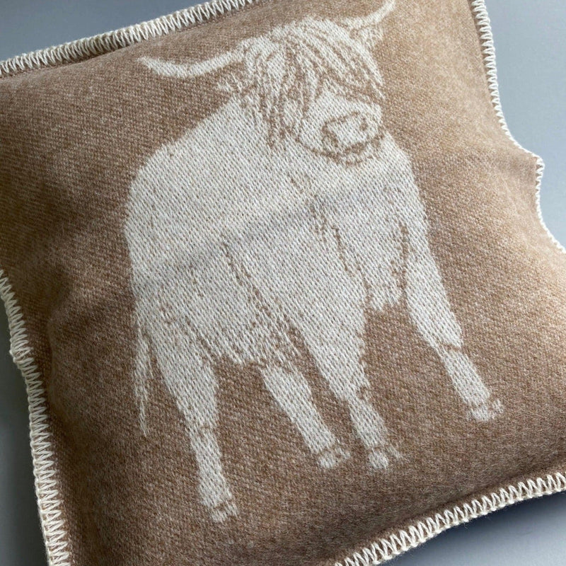 Pure New Wool Highland Cow Cushion Description