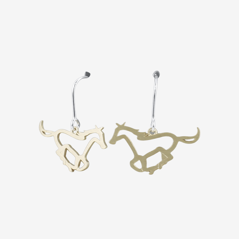 Sterling Silver and Gold Plate Horse Silhouette Equestrian Earrings Description