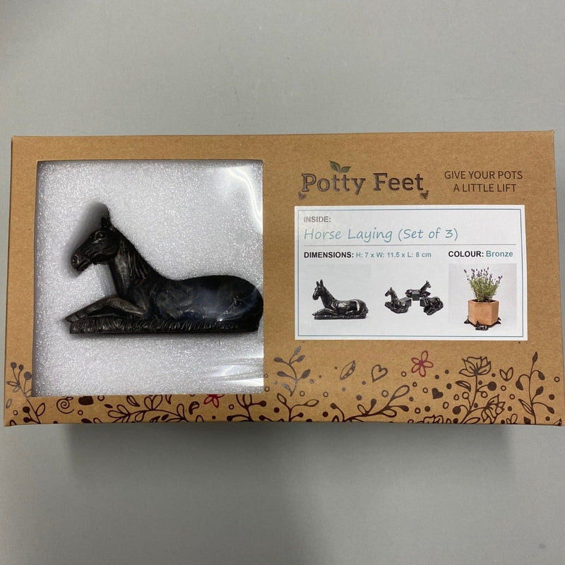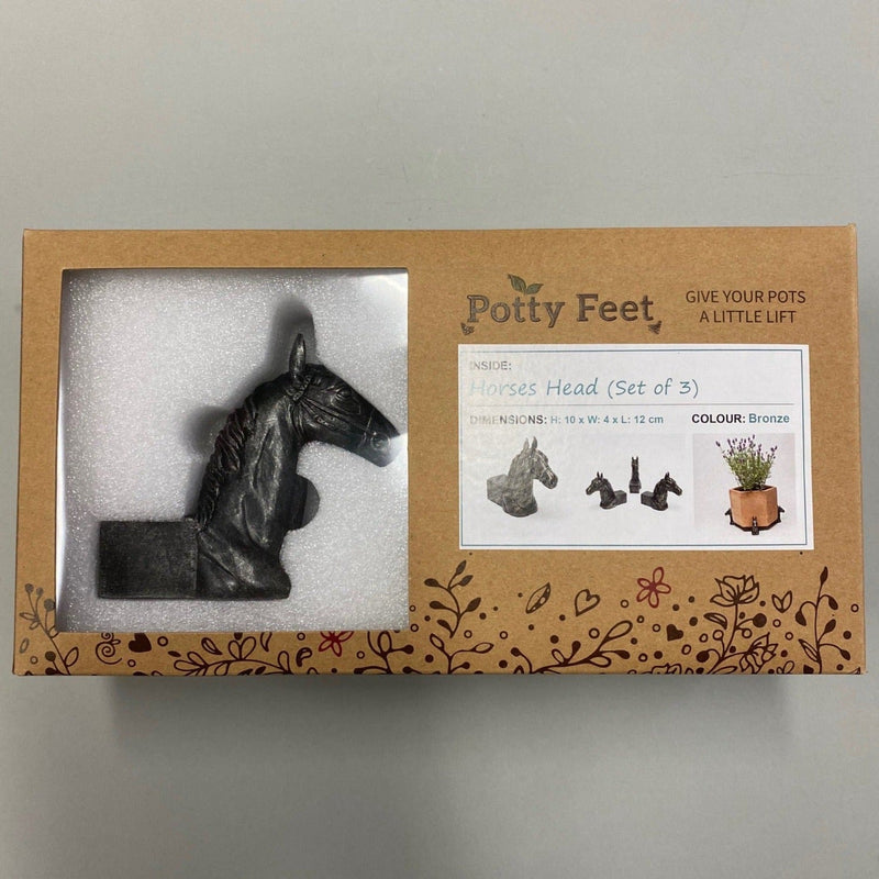 This Set of Three Sitting Horse Potty Feet is super charming and will give your plant pots a little lift perfect for preventing water logging. The set of three bronze coloured sitting horses slide easily under the bottom of your pots for a fun and equestrian twist on your garden pots. Also available in a horse head design, these potty feet are a best seller and make a perfect gift for any keen Equestrian gardener! Stock up now and make those plant pots stand out!
