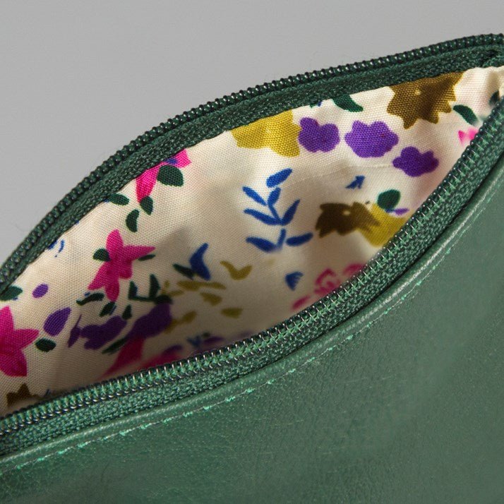 The applique purse features a beautiful design of a white pony grazing in a flowery summer meadow. The reverse and zip are a contrasting dark racing green whilst the inside is lined with a gorgeous cotton floral print fabric. This little purse would make a lovely present for a child or a great coin purse for an adult!