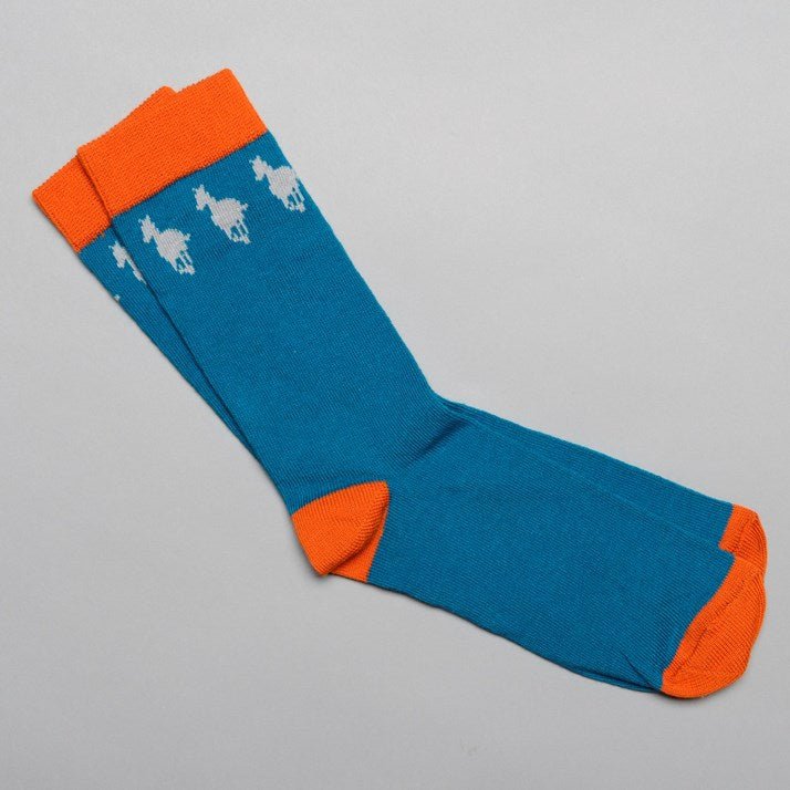 Petrol Blue and Grey Cotton Kids' Horse Socks Description