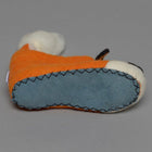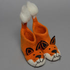 Hand-made and super cosy, these slippers feature a cute little fox face, even with an added bushy tail! Super fun, but also warm the slippers will make a perfect gift for any foxy little one. Felt upper with a strong suede sole.
