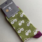 Adorned with a Tractor on a grass green background and with a contrasting purple toe, heel and top, they are perfect for everyday wear. Soft, stretchy and incredibly comfortable, these socks are perfect as a present on their own or as part of a hand-picked mixed gift-box.