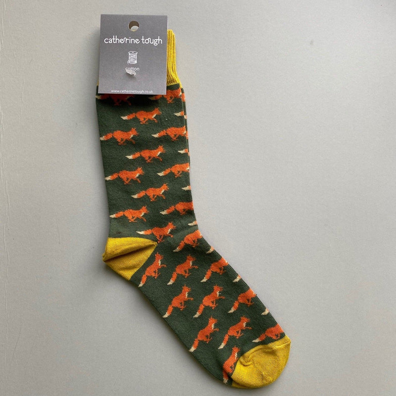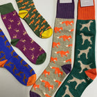 Adorned with a bright orange fox on a green background with a mustard toe, heel and top, these socks are perfect for everyday wear. Soft, stretchy and incredibly comfortable, they make a perfect present on their own or as part of a hand-picked mixed gift-box.