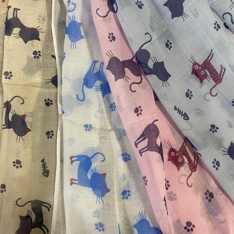 This lovely, soft Cat Design Printed Scarf has a rather fun all over cat print in 2 colours giving a lovely, charming effect. The scarf is a good size and great to add warmth in the winter and style in the summer! Available in 4 different colourways, blue, white, taupe and pink.