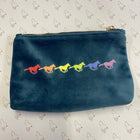 The lovely teal coloured velvet makeup bag has the bright and colourful galloping horses printed on the front. The bag has a neat zip across the top and an inner lining, is a really generous size and could double as a pencil case too.