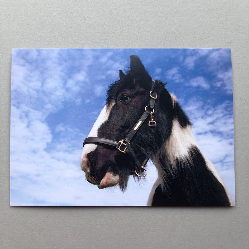 This beautiful "A Gift Horse" Equestrian Greeting Card is created using an original image taken by talented equine photographer Alex Sharp. A beautiful coloured cob with all his whiskers stands against the beautiful blue sky. The card is blank inside for your own personal message so can be used for Birthdays, invites, thank you's and much more.