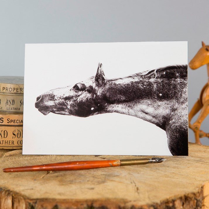 This wonderful image is from an original taken by talented equine photographer Alex Sharp and creates this A "Horsey Kiss" Equestrian Greeting Card. The horse is stretching out his lovely neck, looking exactly like he's reaching for a smacker! The card is blank inside for you own message, so perfect for many different occasions.