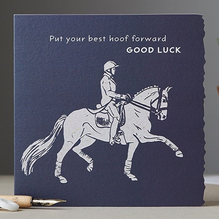 The Best Hoof Forward Good Luck Card is a super fine quality greeting card from Deckled Edge Design with a stylish texture finished edge.
