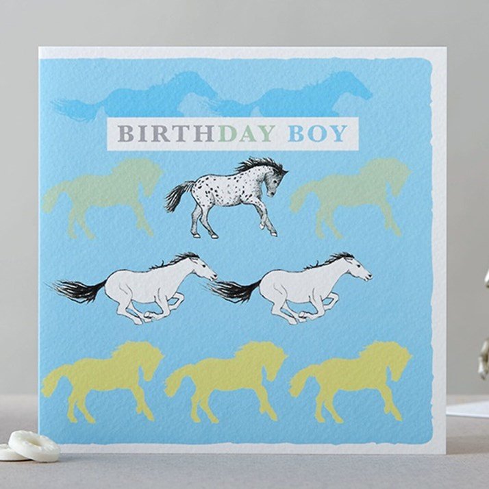 This Birthday Boy Horses Card is a beautifully textured fine quality greeting card from Deckled Edge Design.