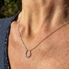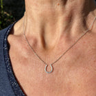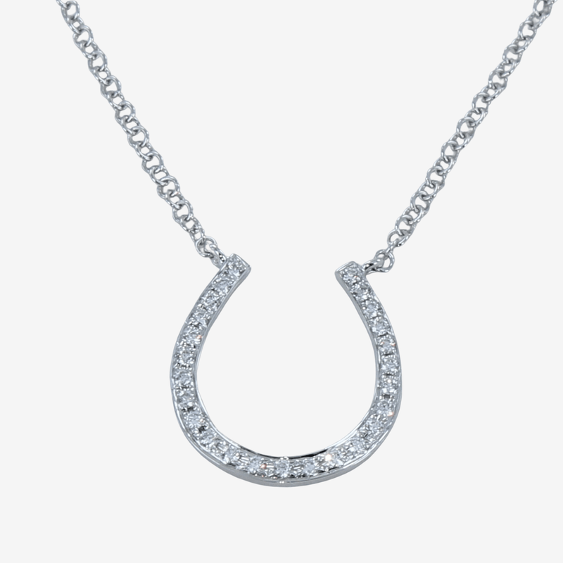 The Diamond Horseshoe White Gold Necklace is absolutely stunning. In solid white gold, the horseshoe has 25 sparkling diamonds set in 14 karat white gold and sitting prettily as a central feature on a 14 karat gold chain. The diamonds are of a lovely clarity and catch the light beautifully with your every move. The horseshoe sits centrally on the chain that adjusts from 16 to 18 inches. It is available in 14k yellow, rose or white gold.