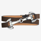 Fans of German event rider Ingrid Klimke will be especially taken with this captivating Favorit Mocha Leather and Steel Snaffle Wrap Equestrian Bracelet by Dimacci.