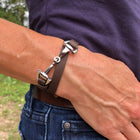 Favorit Mocha Leather and Steel Snaffle Wrap Equestrian Bracelet by Dimacci Description