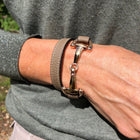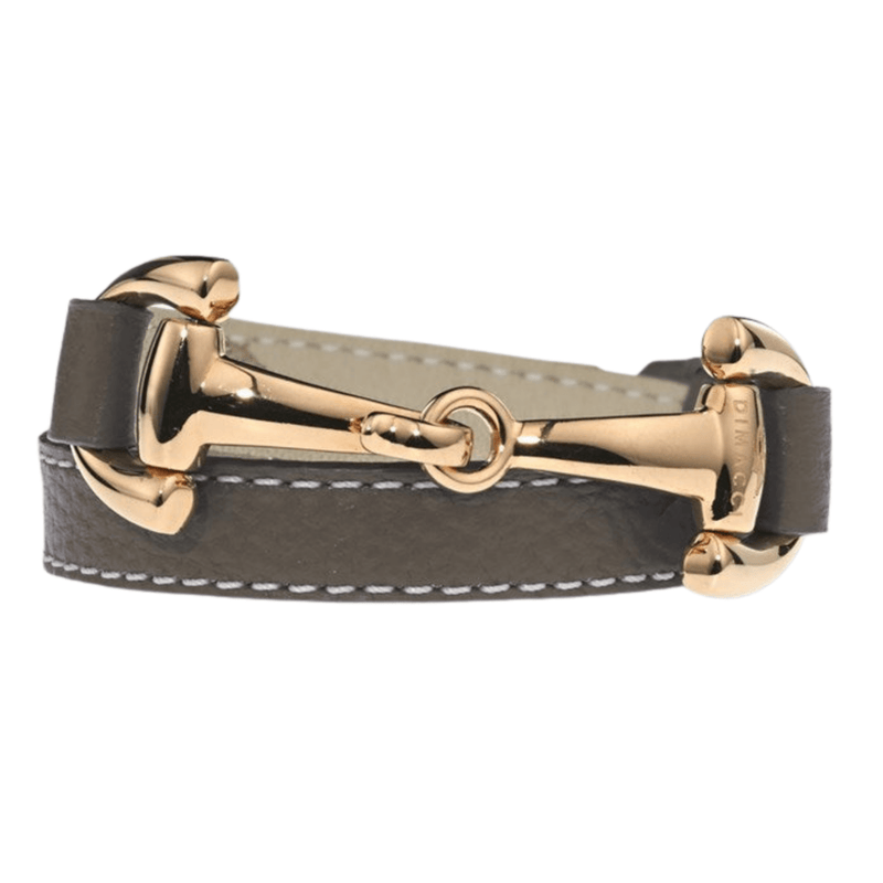 • Taupe Genuine Leather and Rose Gold Plate Equestrian Snaffle Bracelet by Dimacci - Gallop Guru