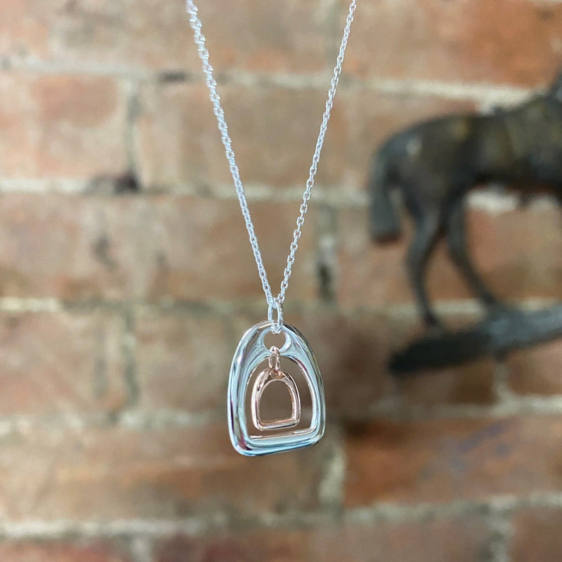 • Best selling sterling silver and rose gold vermeil stirrup necklace adjusts from 16 to 18 inches in length