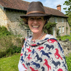• Beautiful, Large Cashmere wrap printed with Navy and red horses on a soft grey background 2m x 70cm