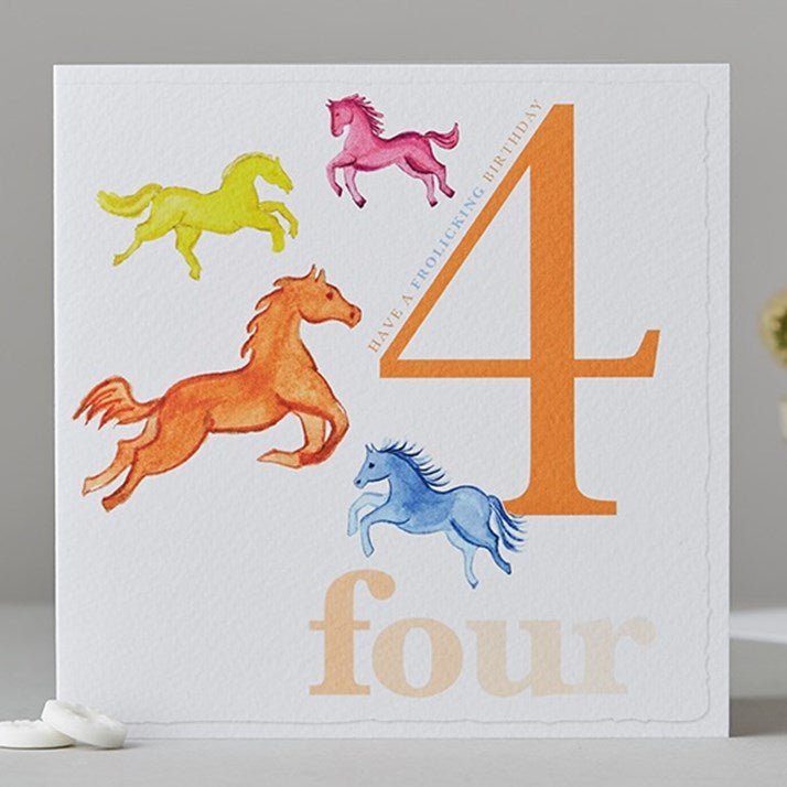 The Four Horses Birthday Card is a beautifully textured fine quality greeting card from Deckled Edge Design.