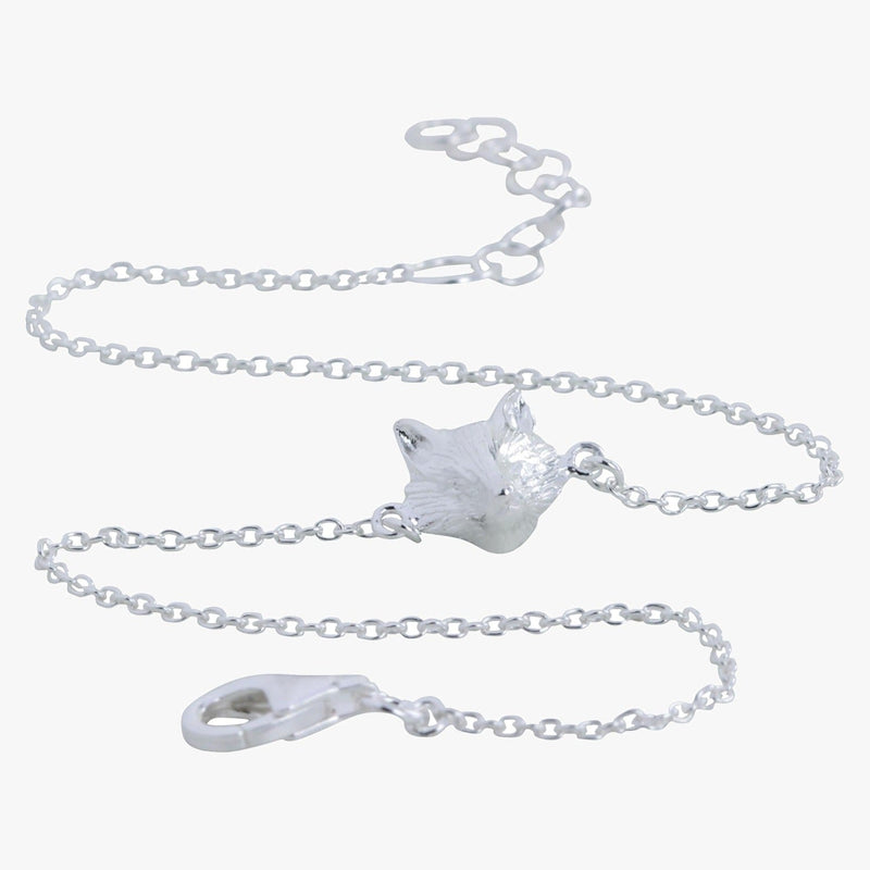 Our fabulous Sterling Silver Fox Head Adjustable Bracelet is exquisitely crafted from the finest quality sterling silver and is sure to turn a few heads. The charming fox head has the most wonderful attention to detail, with a lovely textured finish to the high shine silver. So lifelike and loveable, the fox sits centrally on a fine link sterling silver bracelet chain which is adjustable to fit most wrist sizes.