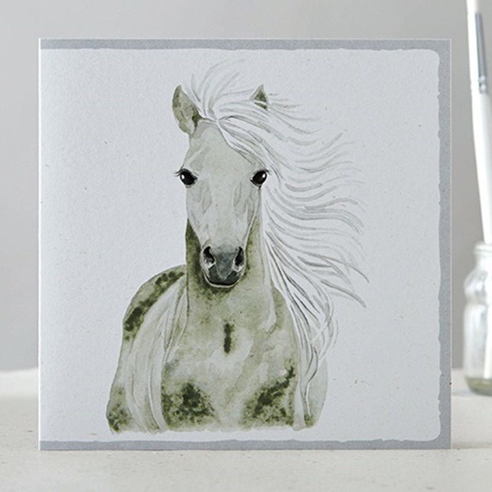 A beautiful textured, fine quality Gorgeous Grey Horse Greeting Card from Deckled Edge Design.
