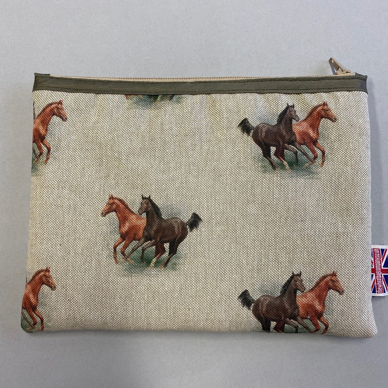 A really lovely Horse Accessory Bag, perfect for keeping your personal items safe. This attractive bag will be perfect for make up, stationery, receipts and keeping things tidy in your handbag!