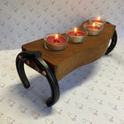 These are very smart and elegant Horseshoe Tealight Candle Holders, with 3 or 4 tealights set into a beautiful piece of dark oak wood, standing on a horseshoe either end with copper nail details. They would be perfect as a centre table piece, or on a mantle piece or side table. Either would make a very special and thoughtful gift to be treasured for years to come. A wonderful Christmas or wedding gift for all your equestrian friends and family.
