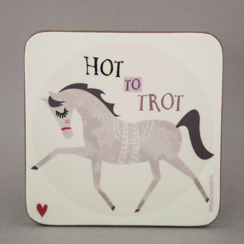The Hot to Trot Horse Design Drinks Coaster is a really cool coaster, designed and produced in the UK by talented artist Jo Burrows. Featuring one of Jo's fabulous fun but stylish designs, this coaster would make a really sweet gift for a horsey friend. Perfect for stopping those pesky ring marks!
