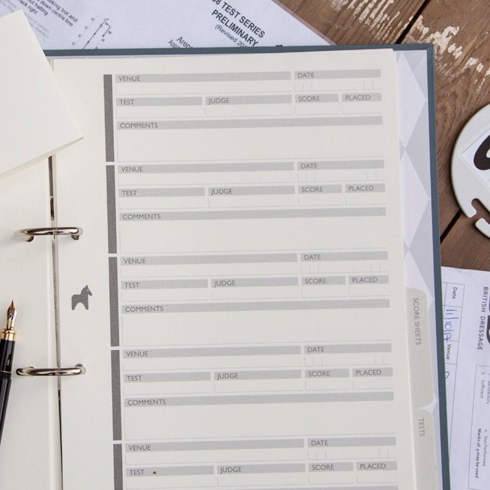 This folder is simple but clever. It's given us focus and a real sense of organised purpose. Anyone out there who's competing at any level should have one of these marvellous aids. Buy one for yourself or for a dressage lover you love. It's an immensely thoughtful gift.