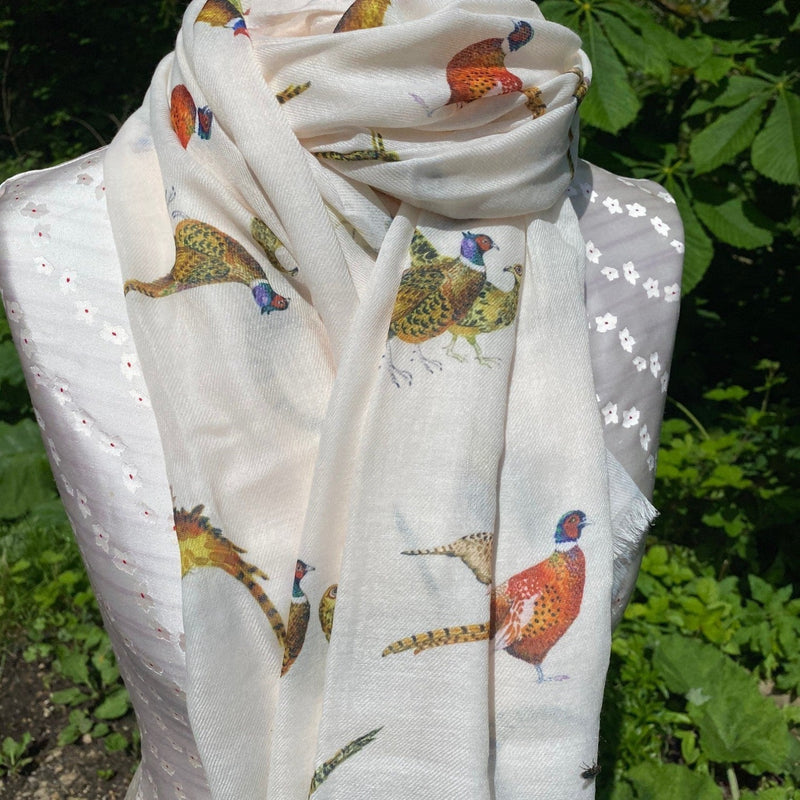 We love this new Country Animals Design Soft Twill Scarf. Its a lovely size and the all over print has several different country animal images, including pheasants, foxes, stag and labrador. The colourful design in on an attractive pale cream background so will go with everything! A perfect all year round scarf to add colour and warmth to your outfit. A very thoughtful gift for a special country loving friend. We have the same scarf in a horses and highland cow design too.