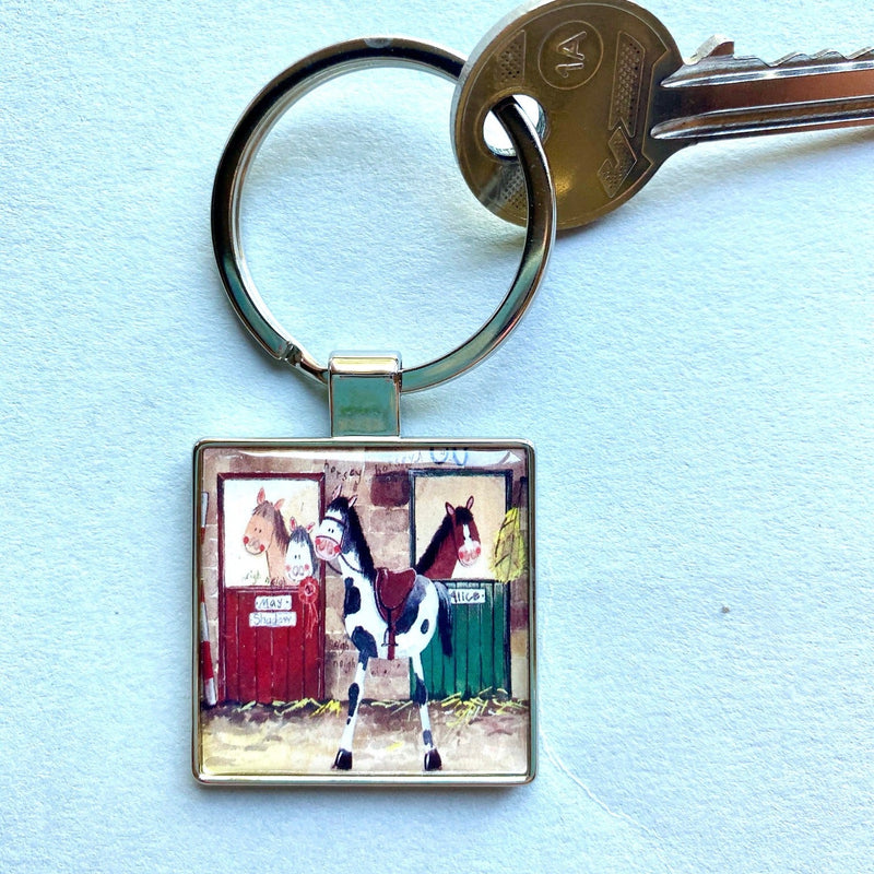 We love this new Pony Gang Picture Key ring by Alex Clark - with its very popular image of 3 Horses by their stables. Perfect for keys or to pop on a child's bag for easy identification. This delightful key ring will make a lovely little present for any horse lover.