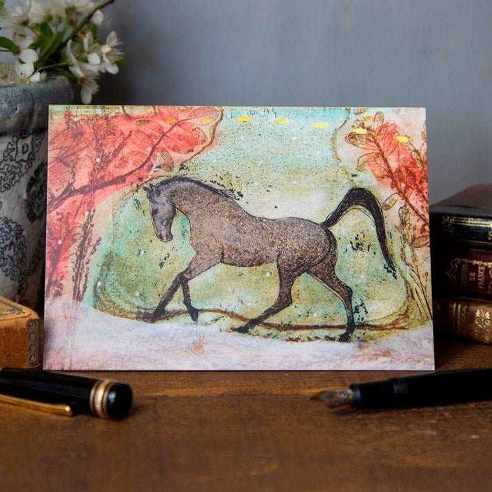 This lovely Rose Valley Gallop Horse Card is created from an original artwork by Finnish artist Maarit Kontiainen.