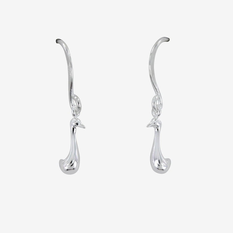 Our Sterling Silver Runner Duck Drop Earrings are really fun and a perfect depiction of Caroline's own Runner Ducks in the back garden! Crafted from high quality sterling silver, the runner duck has a high shine finish that reflects the light with exquisite detailing in its face and wings. He sits gracefully on a sterling silver hook which swings gently in the ear.