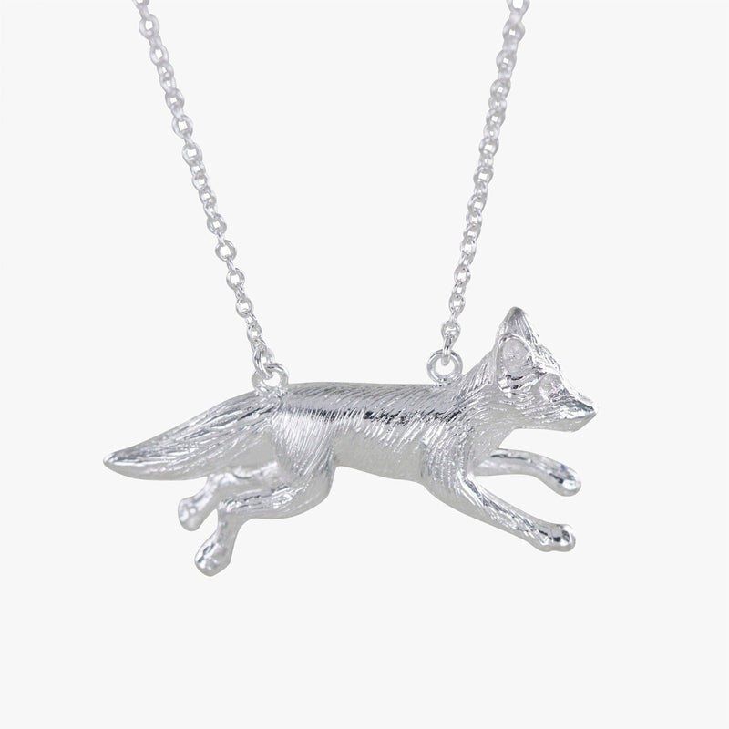 Our Sterling Silver Large Running Fox Necklace is certainly one of our statement pieces and adds the 'WOW' factor to any outfit. Crafted from the highest quality sterling silver, the fox has a wonderful high shine finish which reflects the light as you move. The exquisitely detailed fox has a beautiful texture to it, wonderfully eye catching and makes it so lifelike and loveable, you can almost imagine the fox bounding through the fields!