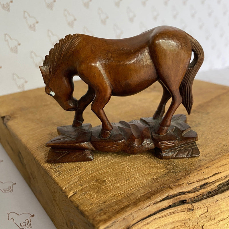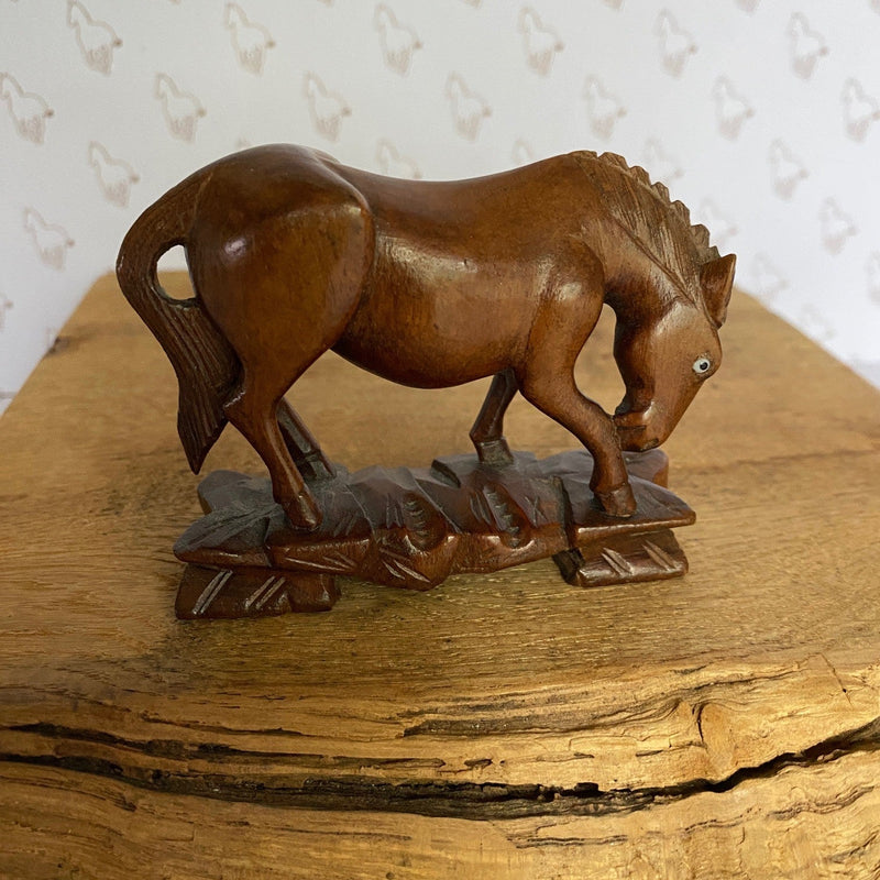 A Beautifully Carved Wooden Chinese Style Horse ornament that would make an ideal gift for a horsey friend, to sit on a mantle piece, desk or dressing table. It has lovely attention to detail and we believe from mid 20th century.