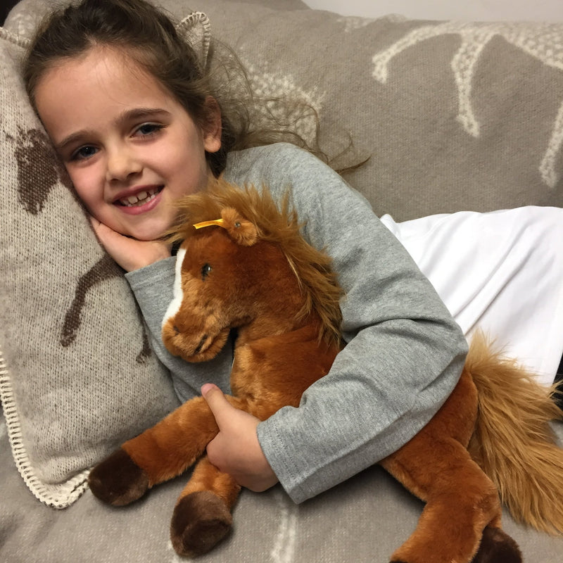 This pony has lovely dangling, foal like legs and will be perfect for role play and cuddling alike. She has some been bag filling to add stability. It will be love at first sight with this wonderful looking, Chestnut coloured Holsteiner!