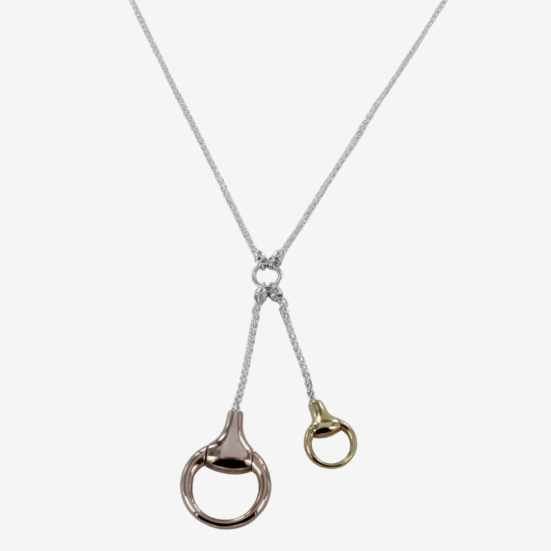 Sterling Silver and Gold Snaffle Duo Drop Necklace Description