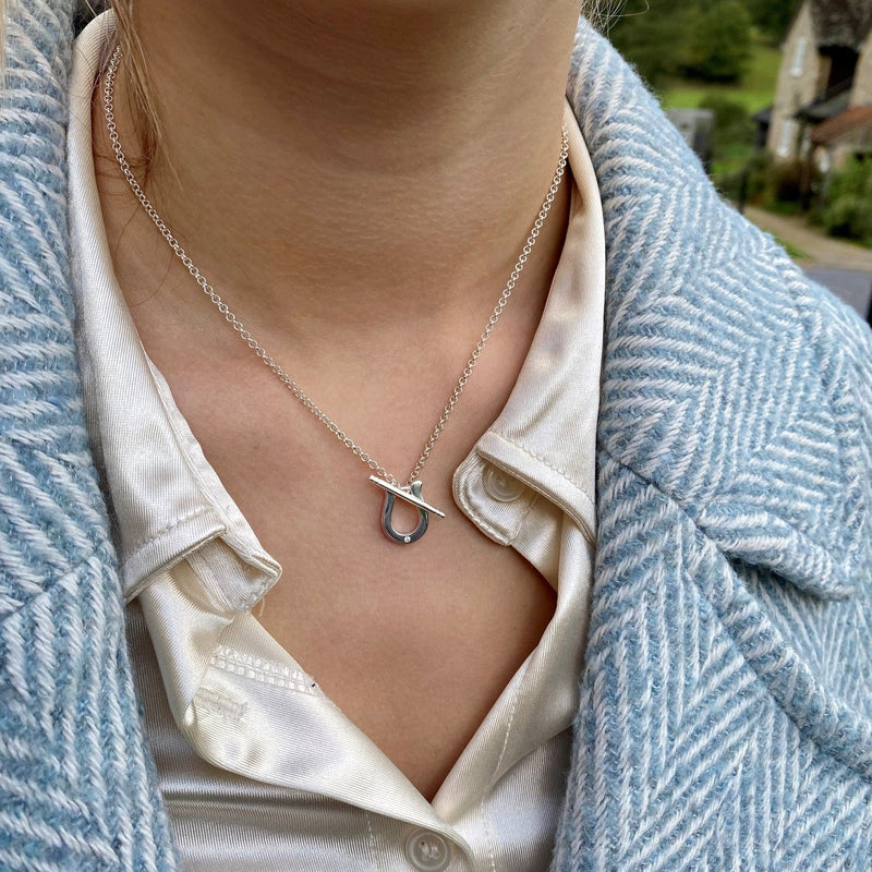Sterling Silver Horseshoe and T Bar Classic Necklace Description