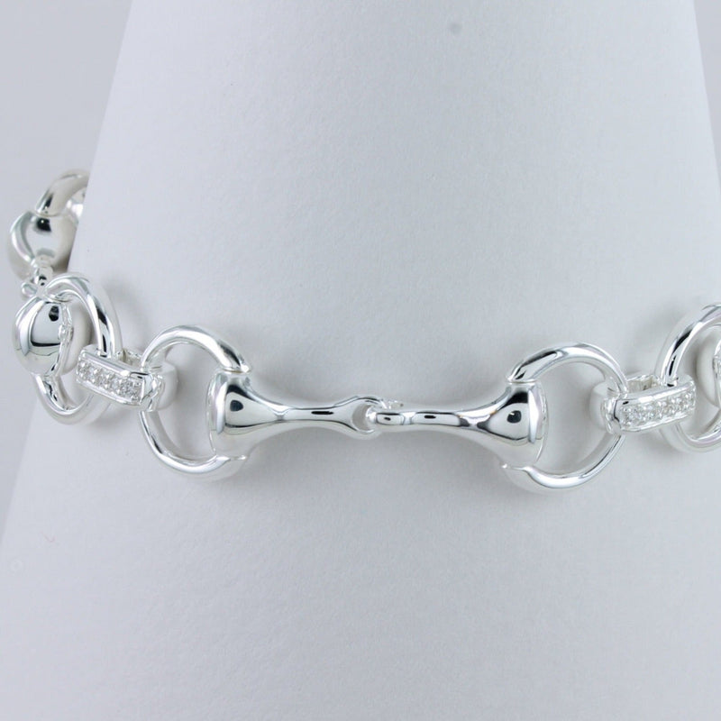 Sterling Silver Large Snaffle Bit Bracelet with Cubic Zirconia