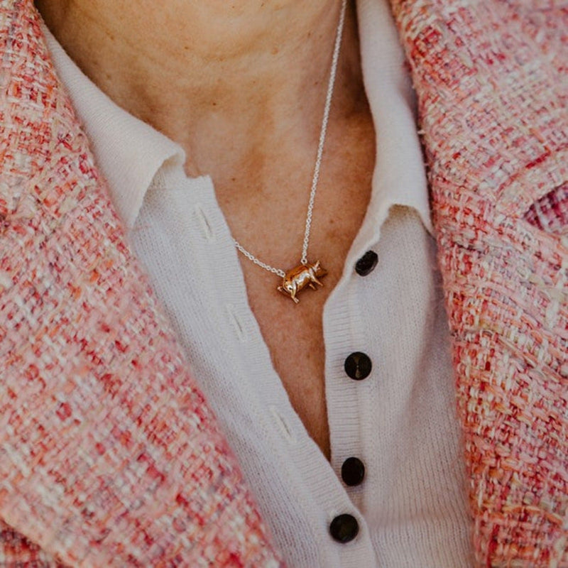 • Sterling Silver and 18ct Rose Gold Plate Solid Pig Necklace - Gallop Guru