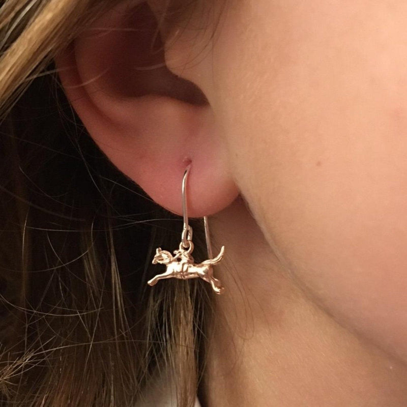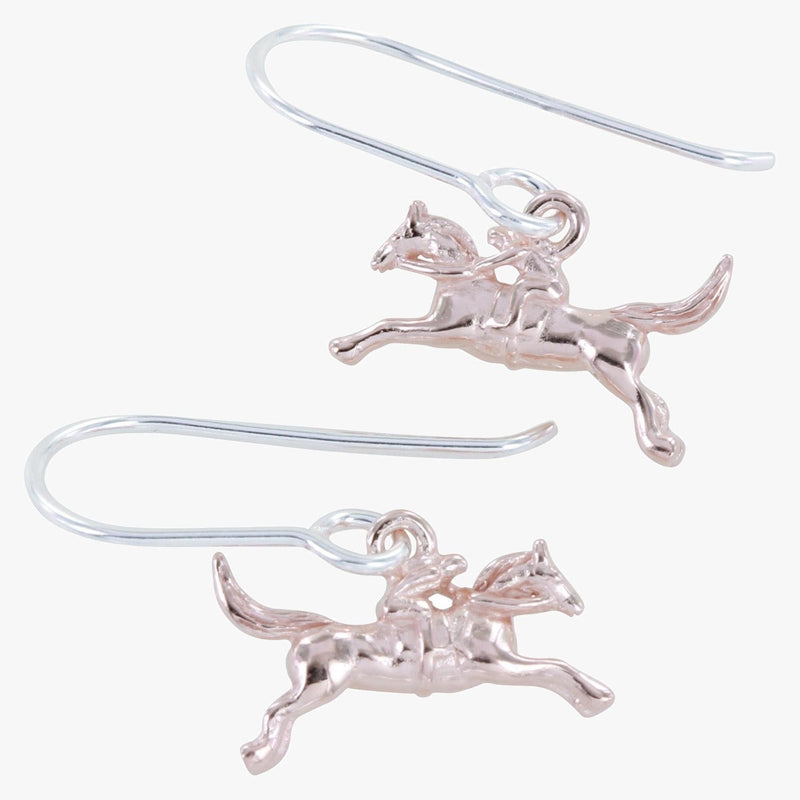 Sterling Silver and 18ct Rose Gold Vermeil Racehorse Drop Earrings Description