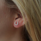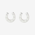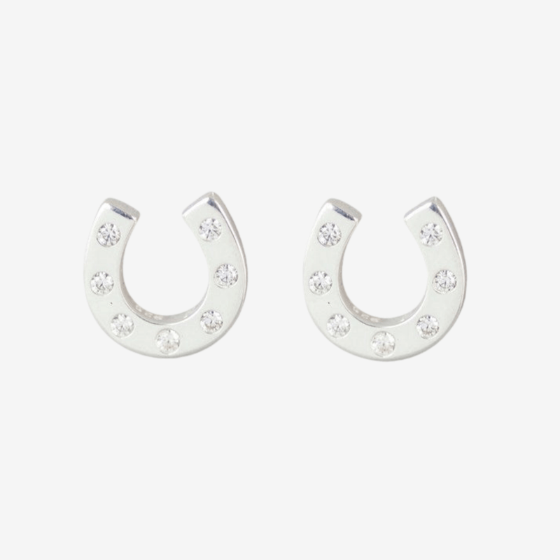 Silver Horseshoe Stud Earrings with Cubic Zirconia Description