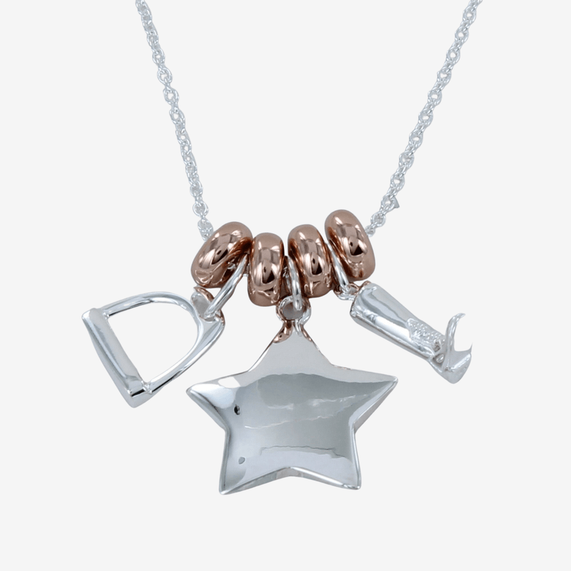 Sterling Silver Star and Equestrian Charm Necklace with 18ct Rose Gold Detail - Gallop Guru Sterling Silver Star and Equestrian Charm Necklace with 18ct Rose Gold Detail - Gallop Guru Sterling Silver Star and Equestrian Charm Necklace with 18ct Rose Gold Detail - Gallop Guru