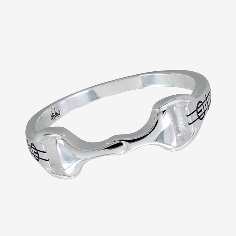 This Solid Sterling Silver Equestrian Snaffle Bit Ring is another timeless piece by the masters at Hiho Silver. The solid sterling silver band has a beautifully crafted snaffle as the central detail, with eye catching "buckle" detail engraved at either side to create this unique piece.