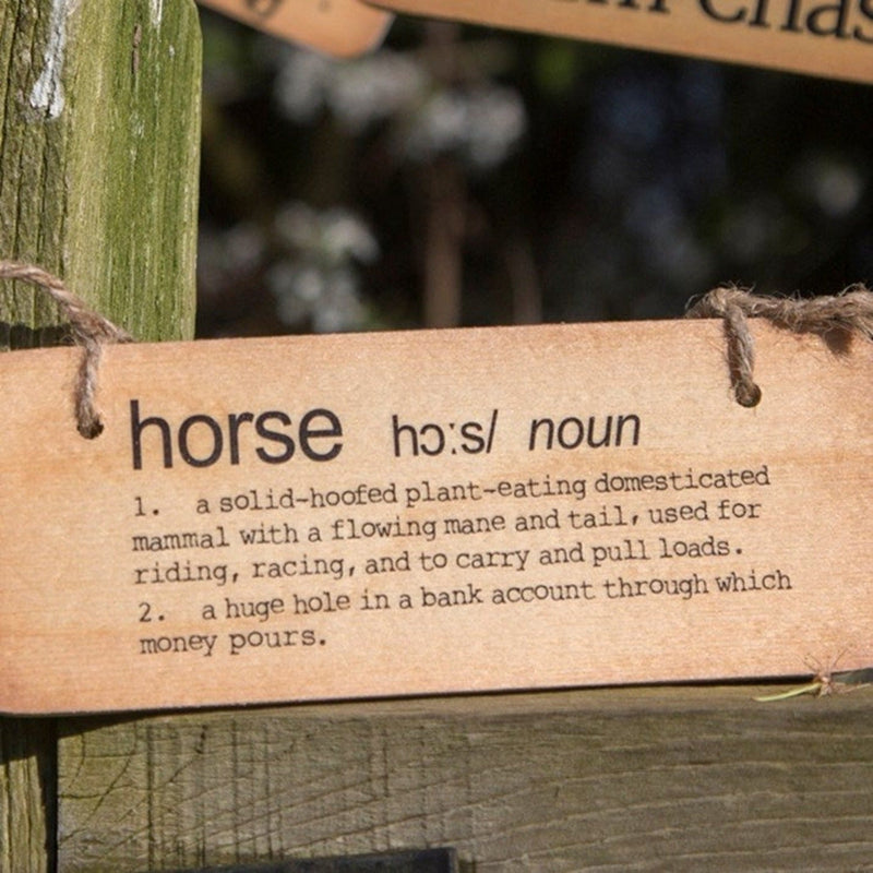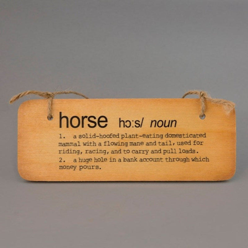 'The Definition of a Horse' Hanging Wooden Sign Description
