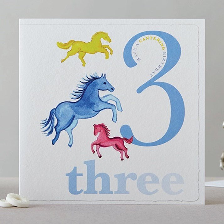The Three Horses Birthday Card is a beautifully textured fine quality greeting card from Deckled Edge Design.