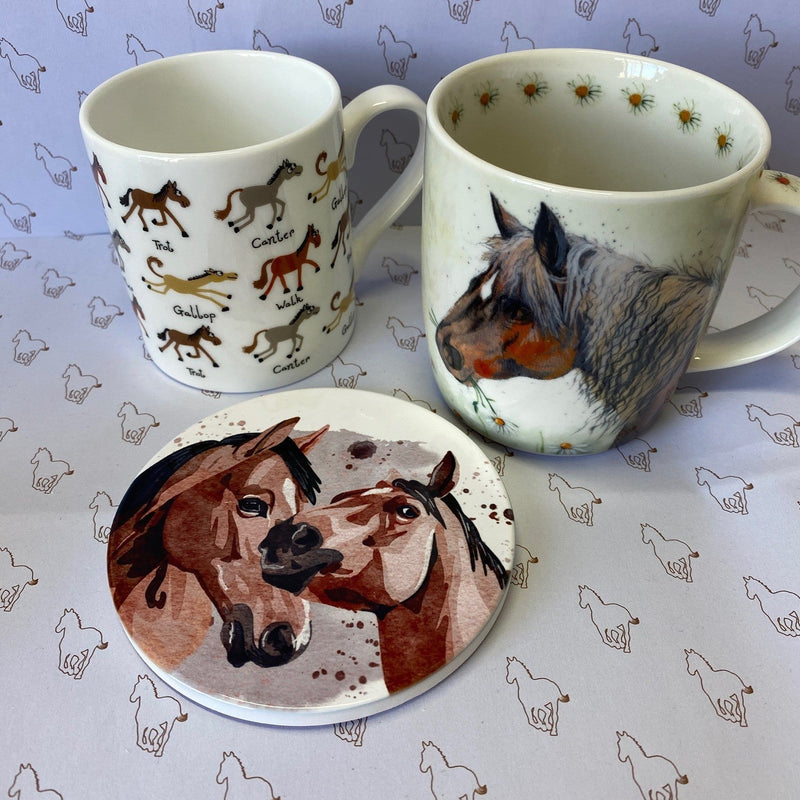 This is a very attractive Two Horses Ceramic Coaster, with a lovely painting of 2 horses on this smart ceramic top and with non slip cork base. Perfect to cheer up your morning cuppa and to give as a gift to a horsey friend. You can add a mug and some chocolates if you are feeling really nice!